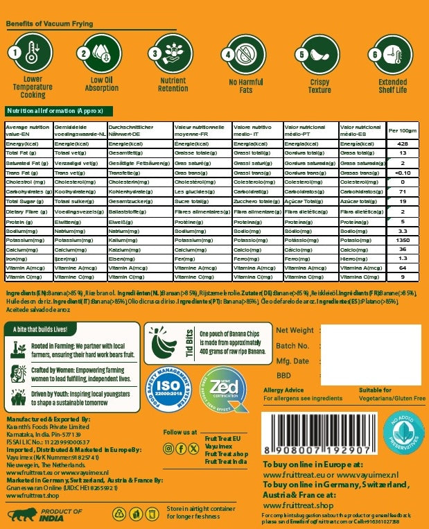 - 100% gesunde, vegetarische, vakuumverpackte Bananenscheiben, 1 Stück, 50 g