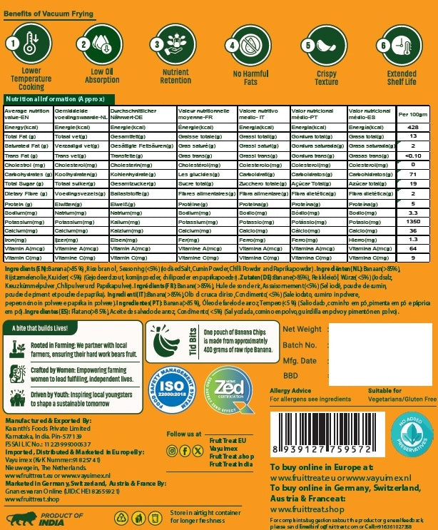 - 100% gesunde, vegetarische, vakuumverpackte Bananenscheiben, 1 Stück, 50 g
